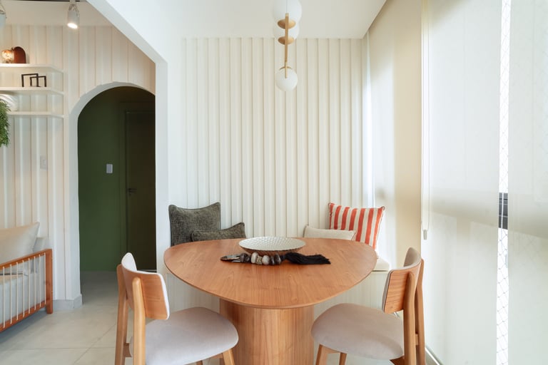 O projeto do Apê Dino nasceu em 2024, a partir do sonho de uma família em transformar um apartamento entregue pela construtora todo sem graça em um lar funcional e a cara deles.
